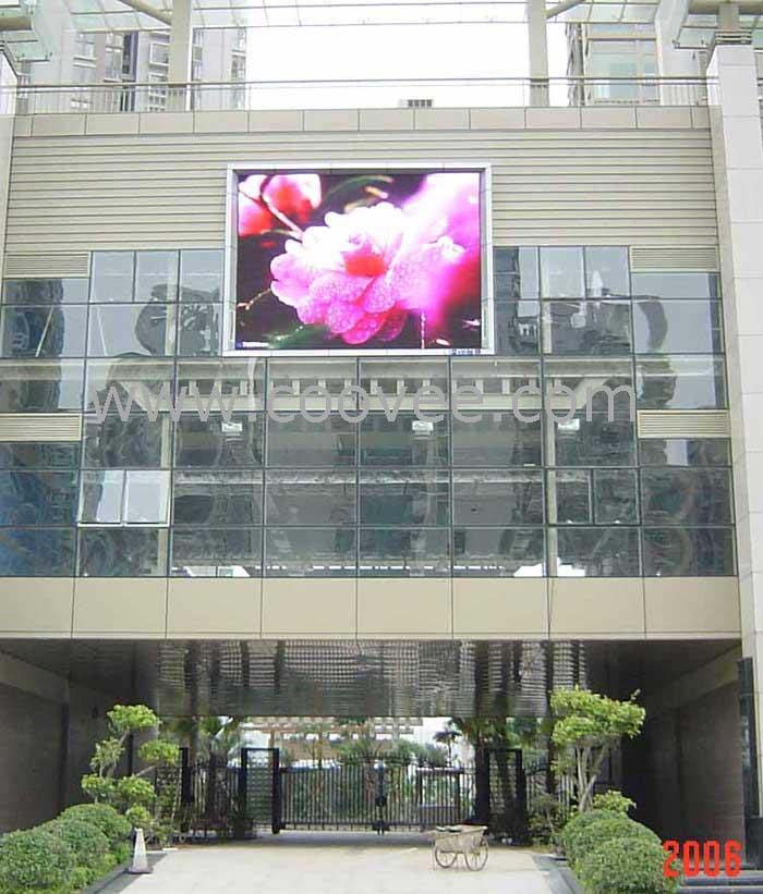 |  | 户外P10全彩色主要是由红色 LED 晶片、绿色 LED 晶片和蓝色 LED晶片封装为一个像素点后组成矩阵,然后再固定到塑胶套件上而成,像素间距为 10mm,物里点间距为10000点/平方米,每个像素点由 1R1G1B 组成。